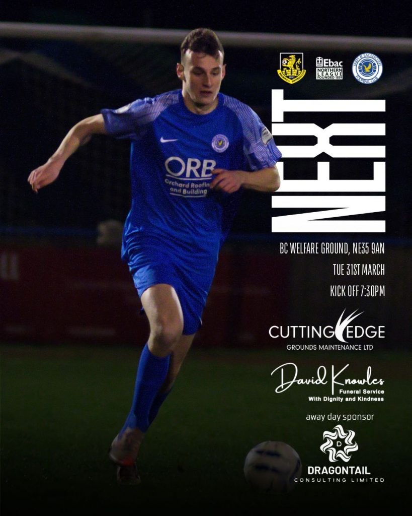 The game takes place at the Villa, Boldon NE35 9AN. Kick off 7.30pm