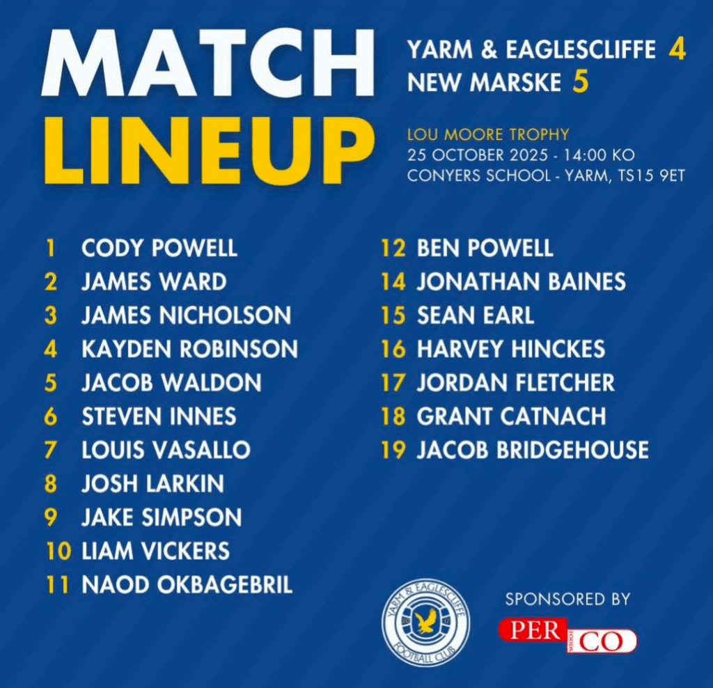 Following last Saturday’s 3-1 victory away in the league at Bedale, Ali & BG made a few changes for the visit of New Marske in the Lou Moore Trophy. With a pretty much full U21 squad being bolstered by first team forward Josh Larkin and the returning Ben Powell who has rejoined the club following and early season move to Synners.